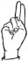 На ћирилици написано ДАНИЈЕЛ МУМАЛО састоји се из 13 слова [?]. Исписано ћириличном једноручном азбуком за глувонеме: